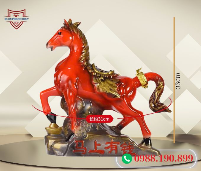 Con ngựa thuộc hành Hỏa, giúp cân bằng ngũ hành, mang lại may mắn, thành công và bình an. Đặt chai rượu ở vị trí trang trọng như bàn làm việc, phòng khách hoặc bàn thờ sẽ “tấn tài tấn lộc”, đặc biệt phù hợp với người tuổi Ngọ hoặc những ai cần thúc đẩy công danh.