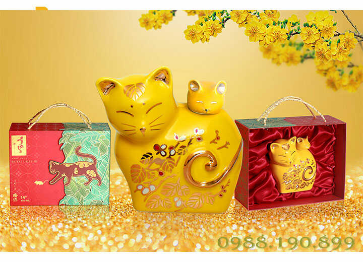 Giá 1.050.000đ/1 chai rượu mèo sứ Royal Umeshu DOHA dành cho quý khách yêu thích sưu tập rượu linh vật con giáp